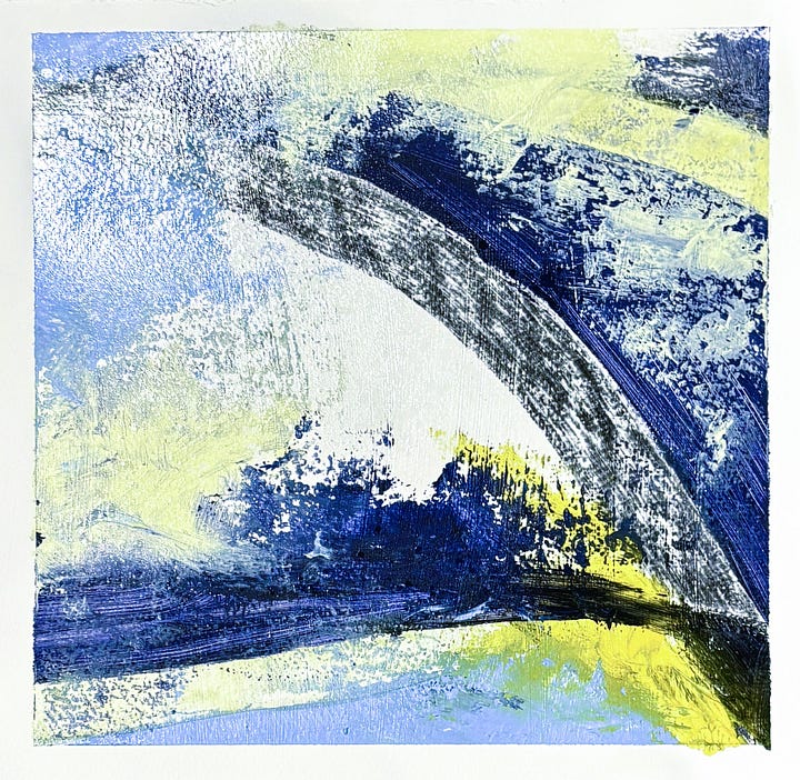 Der er øjeblikke, hvor jeg ikke tænker. Hvor jeg bare er i bevægelsen, i farven, i kroppen. Og når jeg bagefter ser på det, der er opstået, bliver jeg både overrasket - og bange.